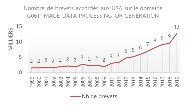 [#4] Voice is the new vision: parmi ces «technologies informatiques avancées», la vision machine connait un essor très marqué, notamment depuis 2017-2018. La raison? Un déploiement vers les industries de services et surtout le commerce. Le seul Amazon a déposé 400 brevets dans ce domaine depuis 2016. A noter que le traitement de la voix suit exactement les mêmes tendances en nombre de brevets et avec 10 ans de moins que… la vision! A suivre de très près donc.